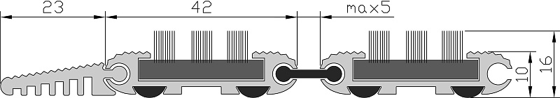 Специальные резиновые вставки снизу профиля обеспечивают антискольжение и предотвращают смещение, также имеют шумопоглощающий эффект.