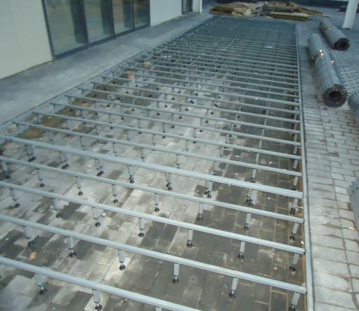 Особенность расположения продольных и поперечных балок предотвращают поломку укладываемого покрытия или получение травмы при прохождении по покрытию независимо от наименования и количества уложенных изделий на опорную конструкцию.