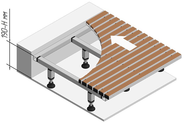 Конструкция ножек дает возможность регулировать высоту, не вынимая опорной конструкции из приямка.